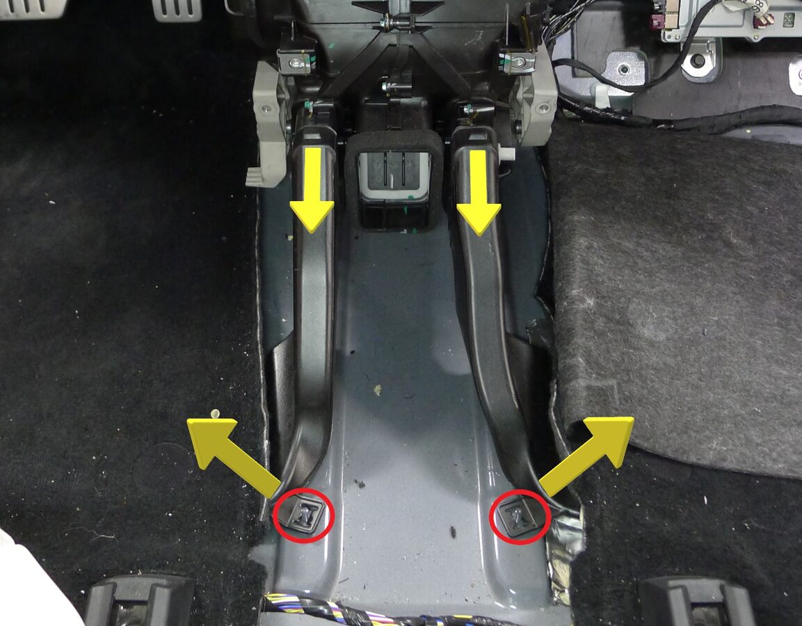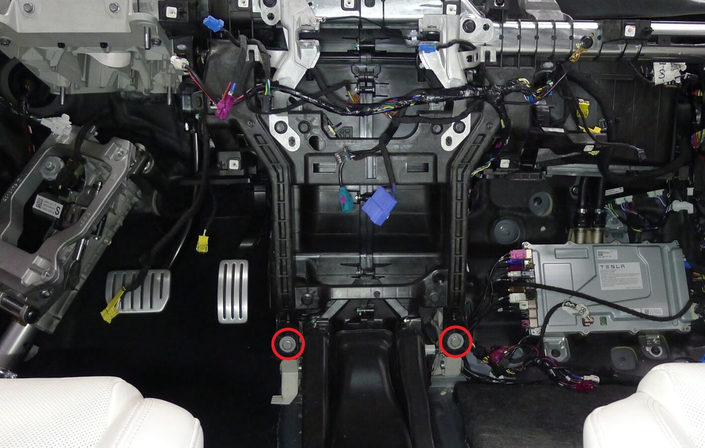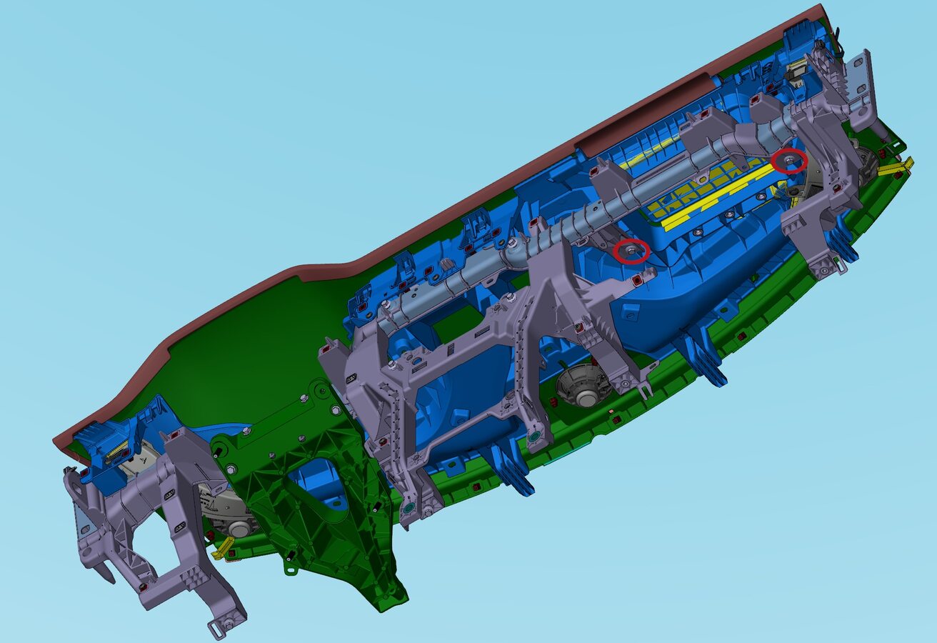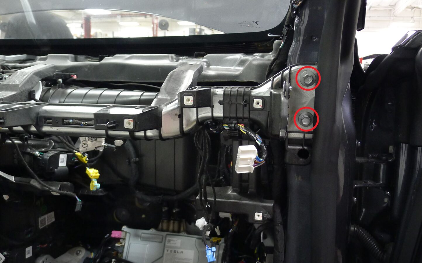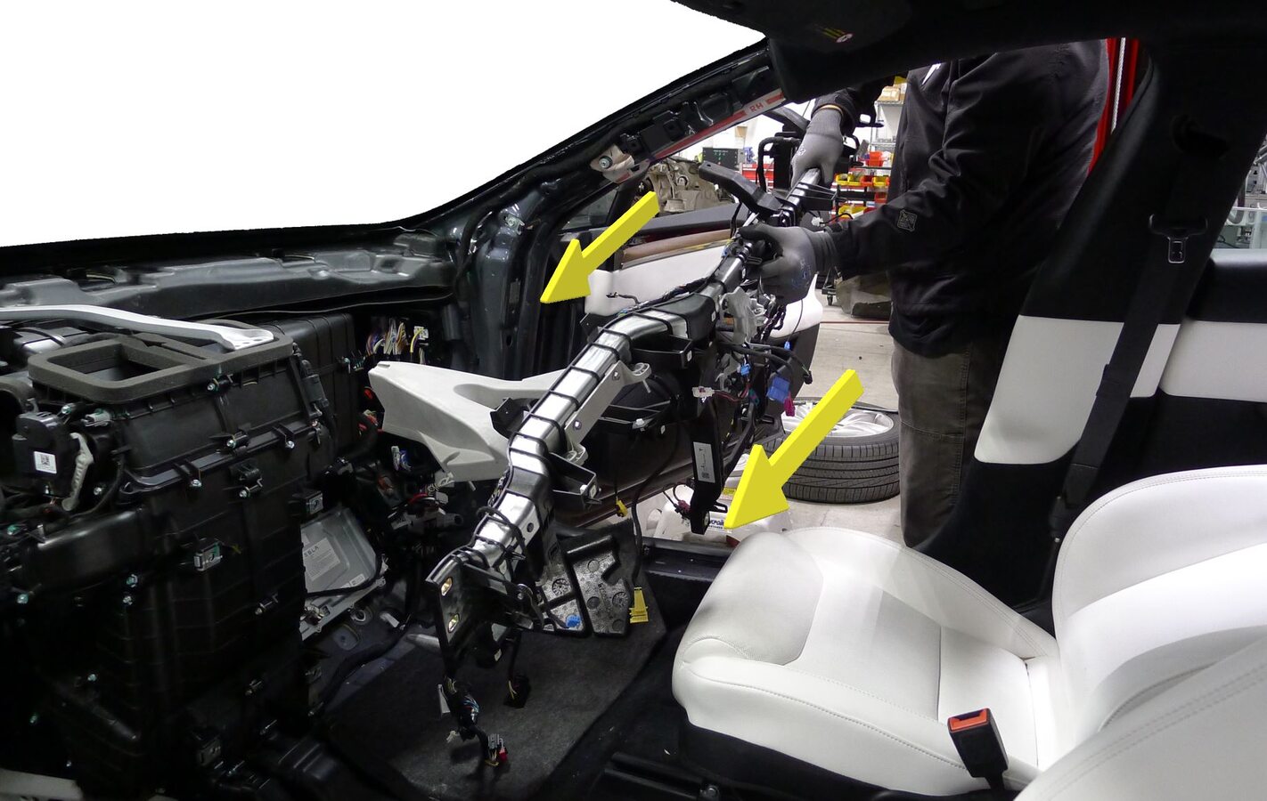 Release upper steering column bracket IP carrier bolts at bulkhead