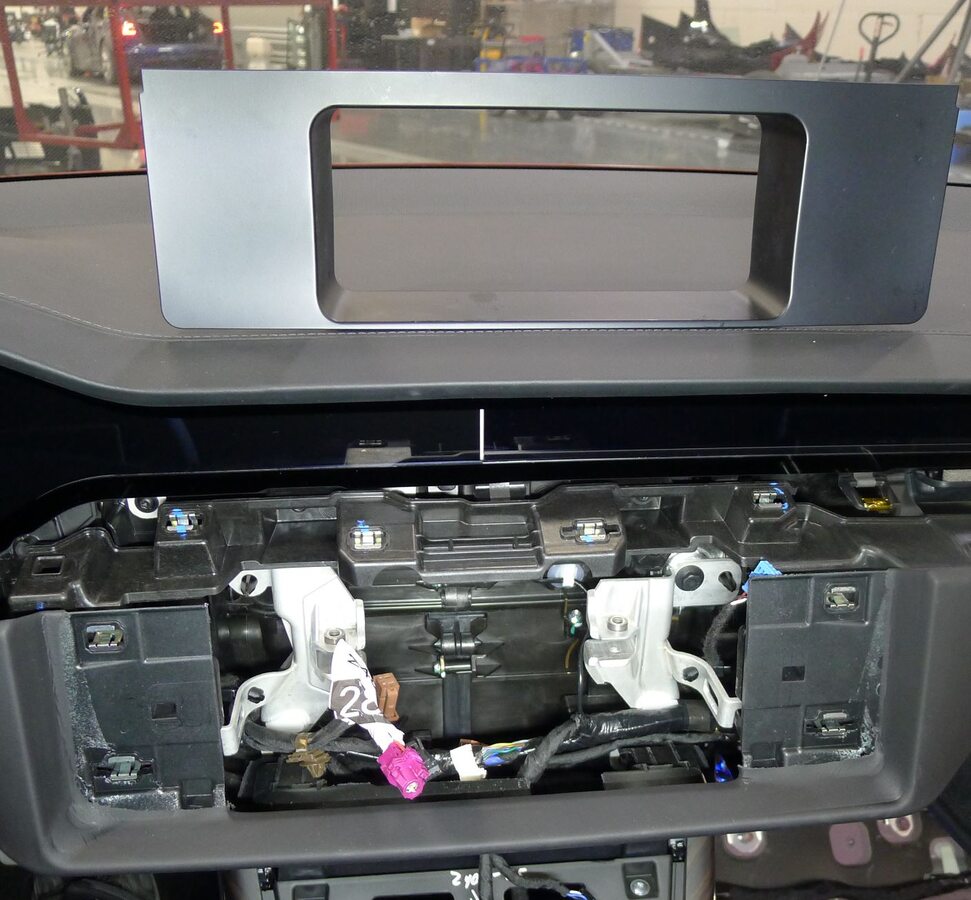 注21x clips, 6x datums, 4x connectors, Connect ambient bright harness, Secure each IP decor connector clip to IP carrier, Secure IP decor to lower instrument panel