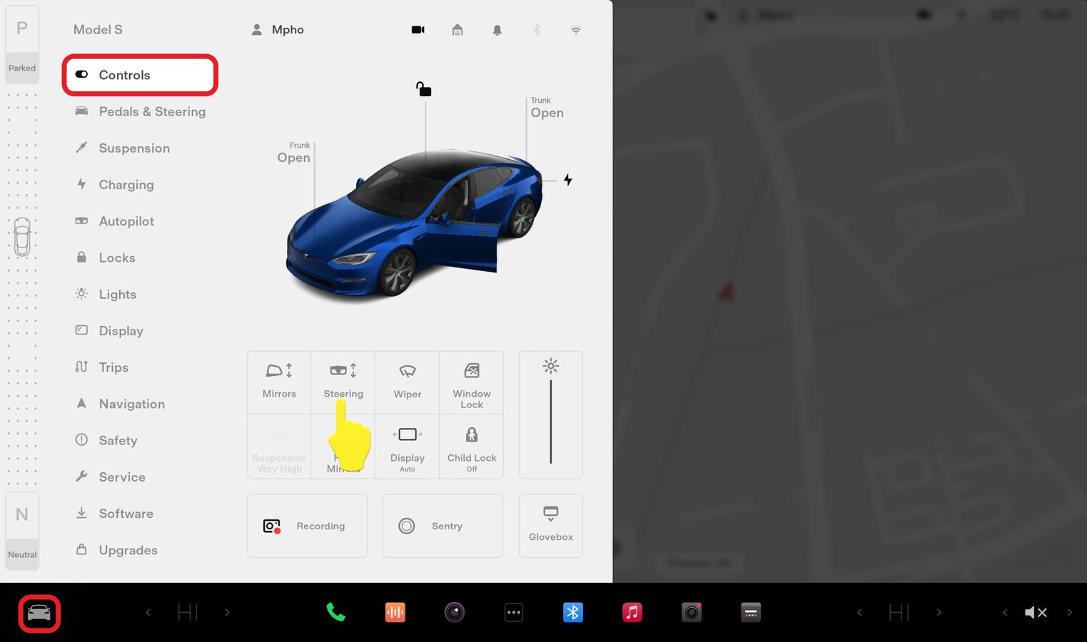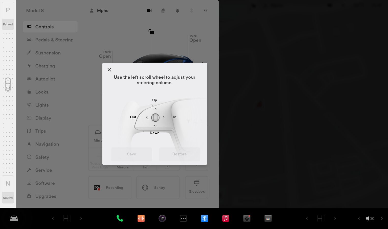 注Via Controls > Steering Wheel, Use left steering wheel scroll wheel to adjust steering column