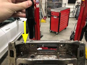 拆下将驾驶位座椅靠背腰部支撑固定到座椅靠背框架的螺栓。5 Nm (3.7 lbs-ft)提示: 推荐使用以下工具:
