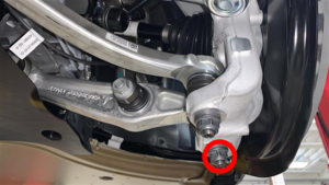 注将转向节放在一边,引导主动减震器叉形件绕过悬架连杆。