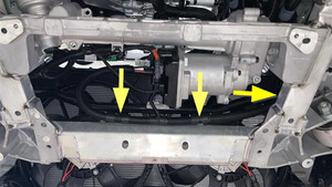 - 松开将电气线束固定在前副框架上的卡子(3 个),将电气线束与副框架分离,然后将其收起来,放在一边。
