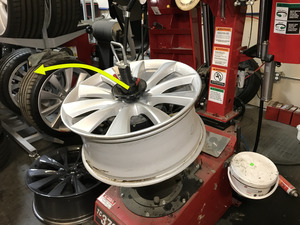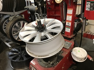 - 将轮毂放到轮胎机上,轮毂前部朝上。
