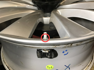 拆下将胎压监测系统传感器固定到轮毂的螺母,然后将传感器从轮毂上拆下。