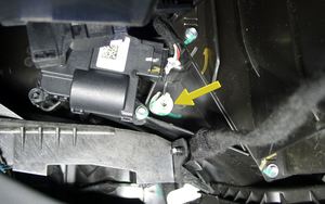 从暖通空调总成上松开右侧脚部空间风管空气温度传感器。