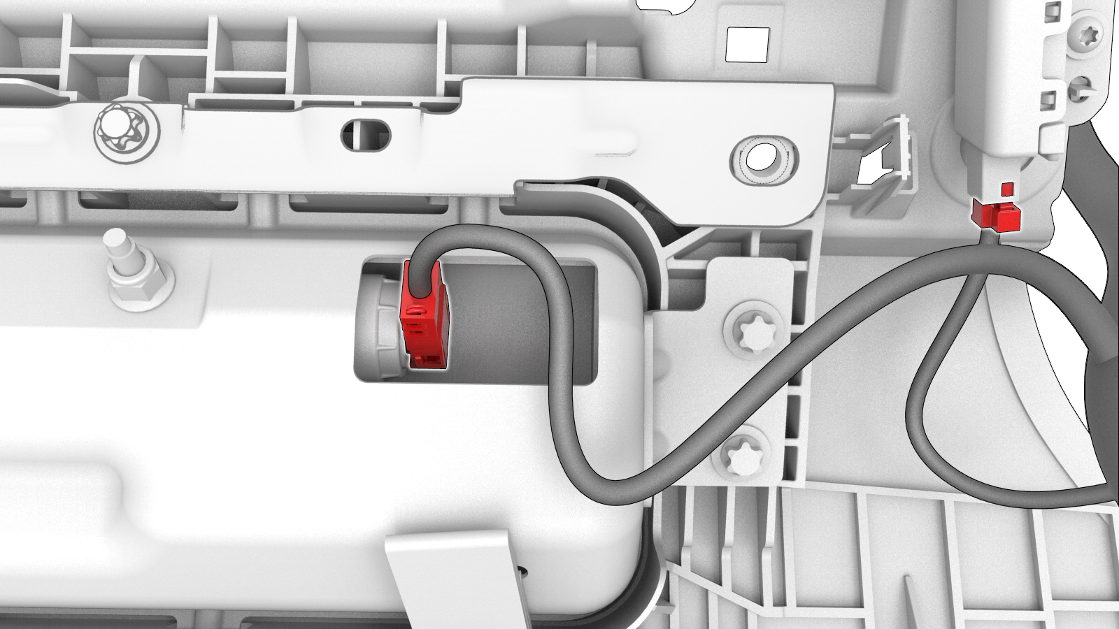 支撑副驾位膝部气囊总成,同时连接电气连接器(2 个)。