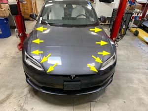 关闭前备箱盖,然后使用间隙和齐平度工具验证齐平度是否在规格范围内。