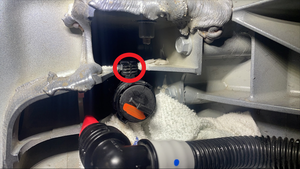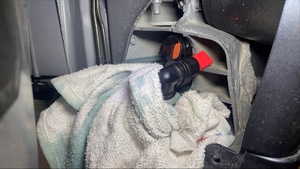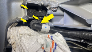 - 在左侧动力总成回流软管后部下方放置吸收性材料。