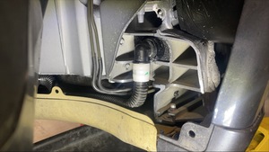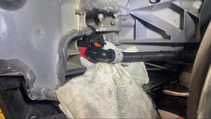 - 取走高压电池前部至左前门槛软管下方的吸收性材料。
