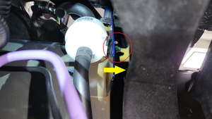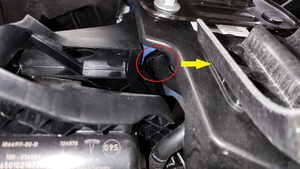 - 拆下将左侧前轮拱内衬固定到前饰板的推拉式卡子(5 个),然后将轮拱内衬移到一旁,以便于操作。