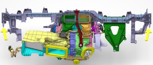 拆下将横梁总成固定到趾板支架的螺栓(2 个)。27 Nm (19.9 lbs-ft)提示: 推荐使用以下工具: