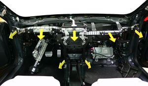 警告避免接触座椅和车门内板。注在将横梁总成与 HVAC 总成完全接合之前,对准基线(4 条)。
