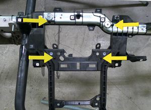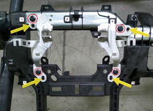 拆下将左侧和右侧横梁总成固定到车身的螺栓(4 个)。27 Nm (19.9 lbs-ft)提示: 推荐使用以下工具: