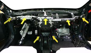将横梁总成与车身和 HVAC 装置接合。