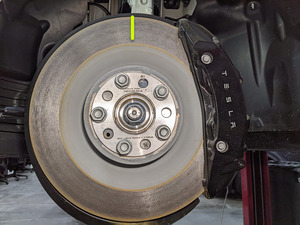 - 标记前制动盘的顶部中心以确定起点。