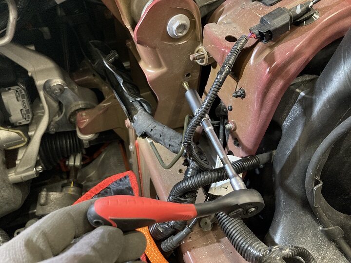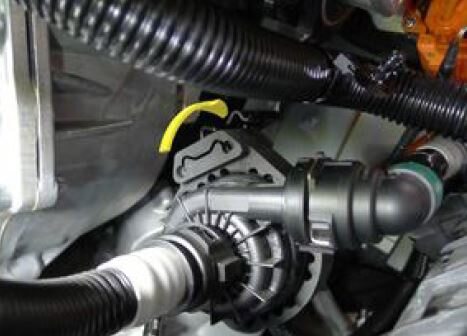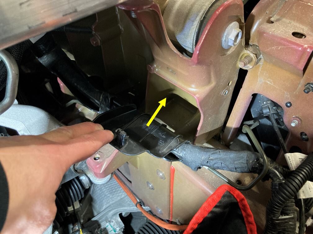 - Remove the bolt that attaches the A/C compressor HV harness bracket toe the A/C compressor.
