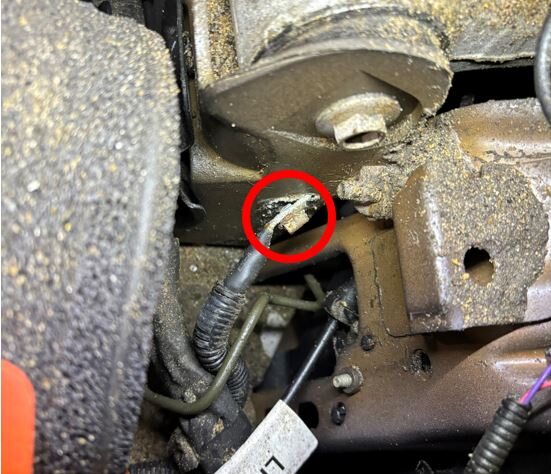 注Maneuver the bracket underneath the high pressure pipe, ensure that the locking tab engages the eyelet.