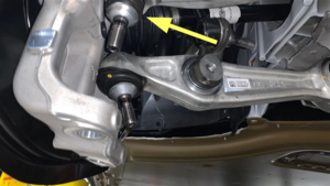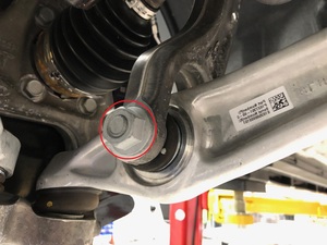 拆下螺母,并将左侧尾连杆从转向节总成上松开