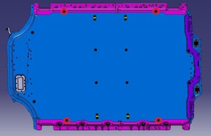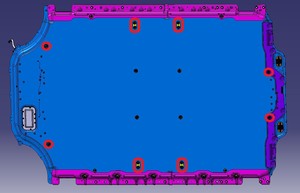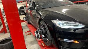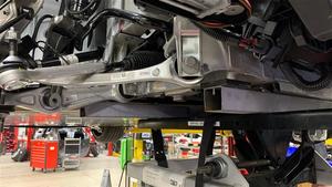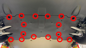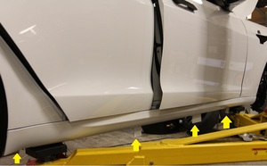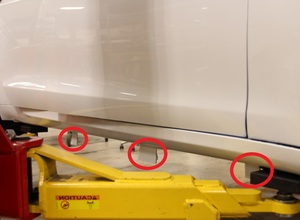 注将空气悬架设为千斤顶模式(如果配备);将所有举升衬垫在举升点对齐,确保所有举升衬垫都摆放正确。如果操作不当,高压电池组将在拆卸过程中与举升衬垫发生物理接触