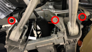 将右侧主动降噪 (ANC) 传感器和减震器支架从空气弹簧模块上松开