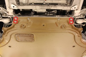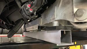 拆下将前滑板固定到前副车架的螺栓,并拆下滑板