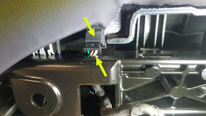 - 连接第二排 RH 座椅闩锁电气连接器。