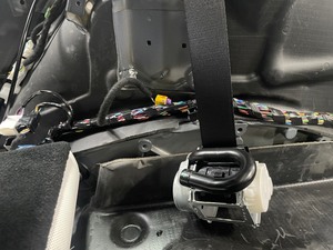 连接电气连接器,然后安装将右侧后排座椅安全带卷收器固定到车身的螺母。