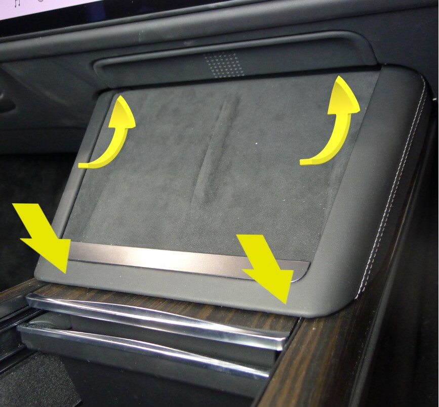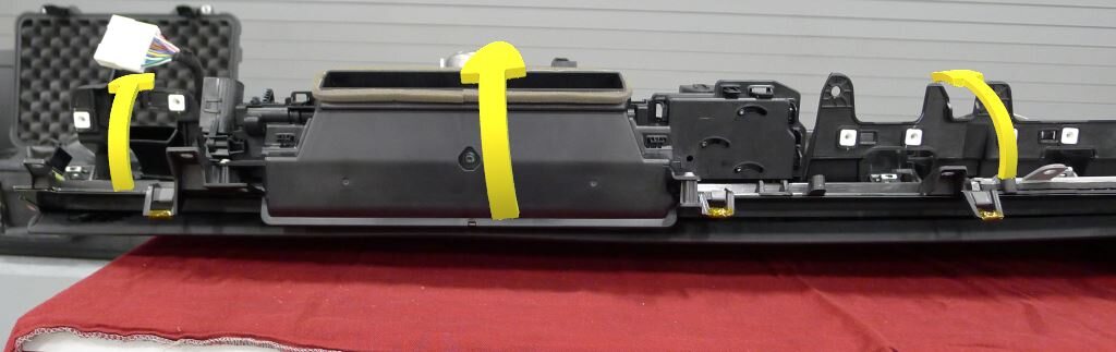 注2x datums, 4 tabs, Slide datums forward into IP and secure tabs down into center console