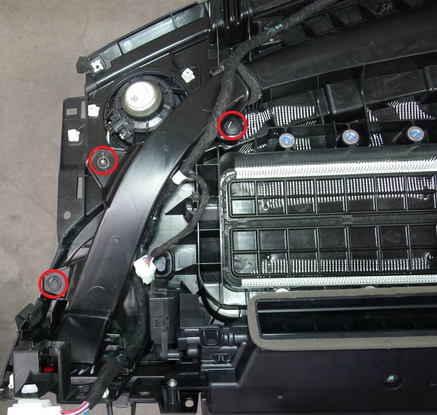 注7x screws, T20, 3 Nm, 1x harness, 1 screw connects instrument panel ground harness. If using part revision 1562948-70-D on a Non-AP4 vehicle, add ground strap 1679240-00-A to aero lens assembly