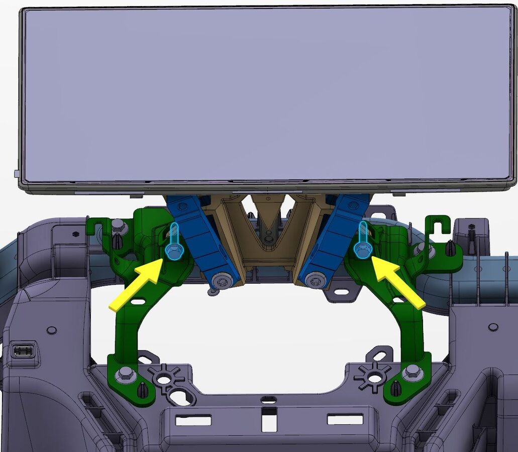 注2x connectors, Slide center display assembly fully into IP brackets after securing connectors