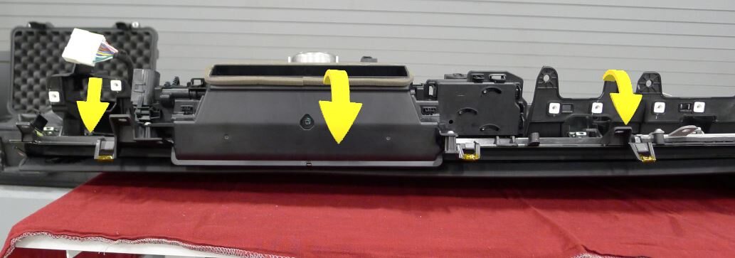 注4x datums, Slide IP sub-assembly into vehicle, Ensure passenger air bag and driver vent assembly have clearance past lower IP assembly, Recommend assistance