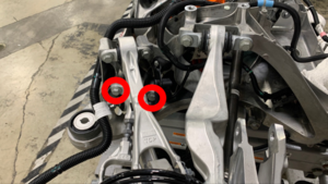 松开将左侧上前连杆固定到左后转向节的螺母和螺栓。