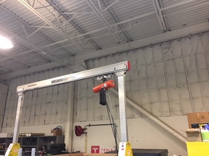 - 将新的后驱动单元置于起重机架下方。