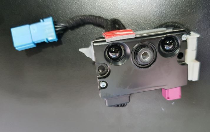 注确保后视镜电气线束正确布线,自由悬挂在外侧,未被摄像头上盖和遮光板总成夹住。