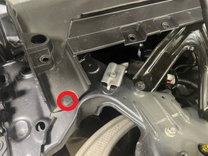 - 拆卸右侧减震塔盖。请参阅盖板 - 减震塔 - LH(拆卸和更换)。