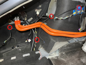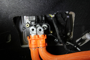 在从高压母排引线到充电接口螺柱的每个高压接头处执行 Hioki 电阻测试。
