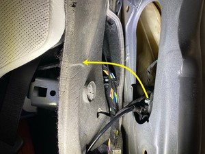 将左侧后车门闩锁拉过轮罩减震器内衬。