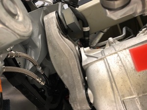 - 将前备箱线束连接到前驱动单元线束连接器,然后推入红色锁片以将其固定。