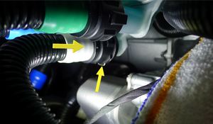 注1 个软管卡子;拆下所有塞子;执行推拉推测试以确保软管完全就位。