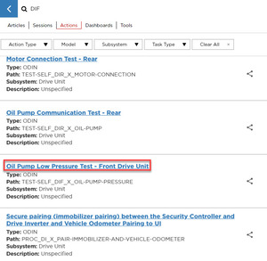 - 选择 Actions/Autodiag 选项卡,然后搜索“Oil Pressure”。