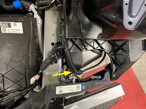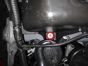 - 松开将前备箱线束固定到清洗器储罐上部支架的卡子。