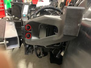 将左侧前端模块 (FEM) 支架放到车内,然后安装将支架固定至车辆的螺栓(2 个)。30 Nm (22.1 lbs-ft)注将支架滑动到车辆前部托架基准上方。提示: 推荐使用以下工具: