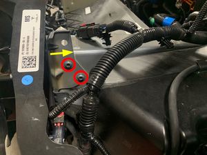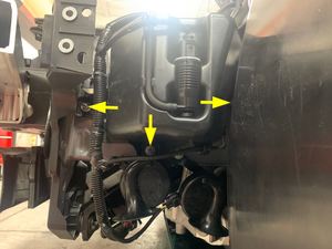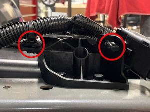 轻轻松开将前备箱线束固定到左侧车灯支架的卡子(2 个)。