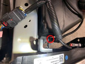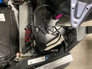 - 安装将前备箱线束固定到清洗器储罐上部支架的卡子。