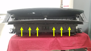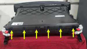 - 松开将主动进气格栅固定到冷却风扇模块总成的锁片(12 个)和卡子(2 个),然后将主动进气格栅从总成上拆下。