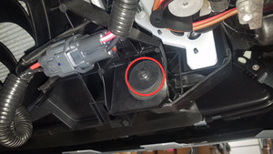 - 松开连接器锁,然后断开与主动进气格栅传动装置连接器的连接。