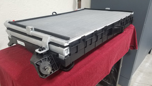 将主动进气格栅放在冷却风扇模块总成上,然后安装将主动进气格栅固定到总成的锁片(12 个)和卡子(2 个)。