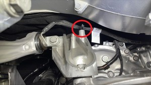 - 拆卸将左后震动软管固定到左后下方控制臂的螺栓,然后将震动软管从控制臂上分离。
