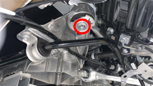 - 拆卸将接地带固定到后驱动单元左侧变流器的螺栓,然后将接地带从车辆上拆下。