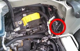 - Release the clip that secures the high pressure pipe to the coolant hose.